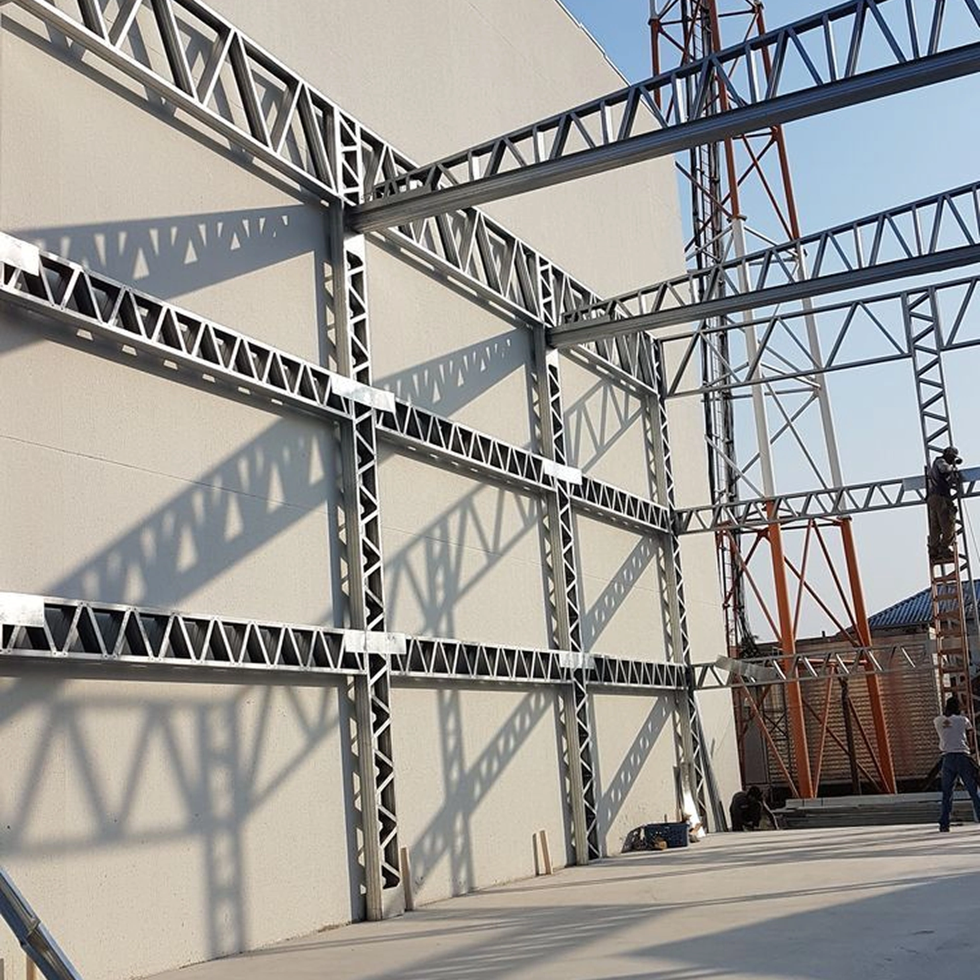 Estruturas em aço galvanizado ou carbono, telhas metálicas trapezoidais ou onduladas, e fixadores de alta performance.